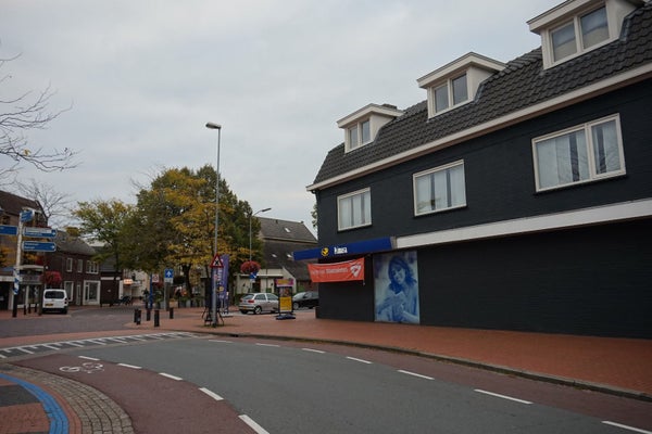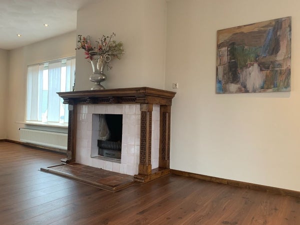 Ruime gang leidt ook naar zeer grote woonkamer van circa 50m2 voorzien van sfeervolle open haard. De woonkamer heeft een mooi uitzicht op de gezellige winkelstraat "de Kromstraat"