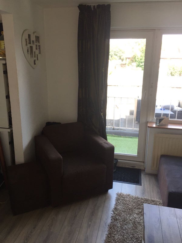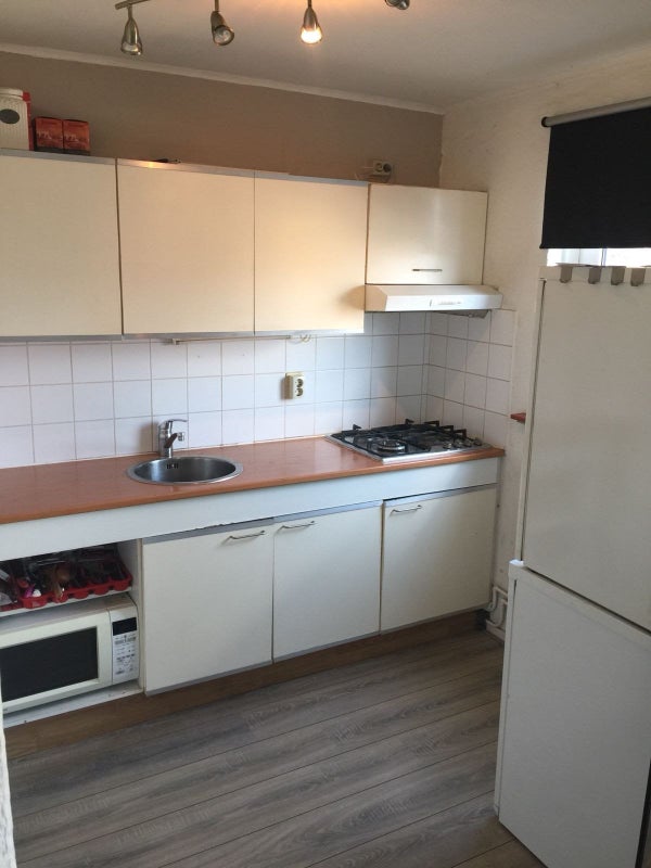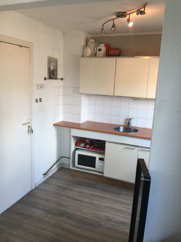 Leuke woon / slaapkamer met laminaatvloer en toegang tot het riante balkon gelegen aan de achterzijde. Keuken voorzien van een gaskookplaat en afzuigkap.