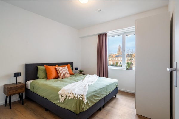 De slaapkamers bieden plek aan een comfortabel bed en kledingkast. De badkamer is modern afgewerkt met douche, wastafel, spiegel, toilet, handdoekradiator en stijlvolle tegels in neutrale tinten.