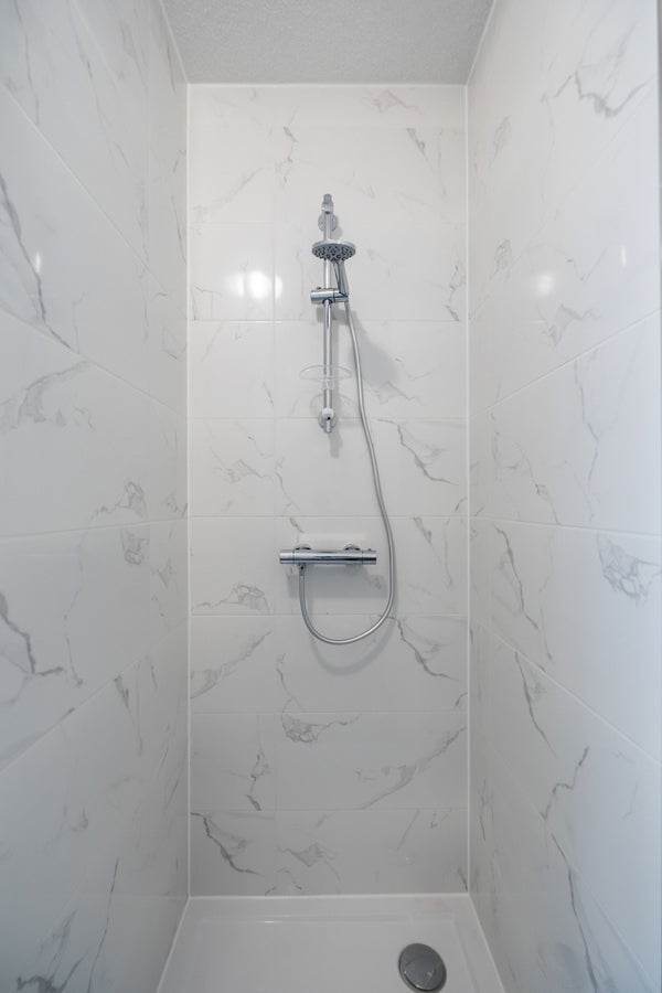 De slaapkamers bieden plek aan een comfortabel bed en kledingkast. De badkamer is modern afgewerkt met douche, wastafel, spiegel, toilet, handdoekradiator en stijlvolle tegels in neutrale tinten.
