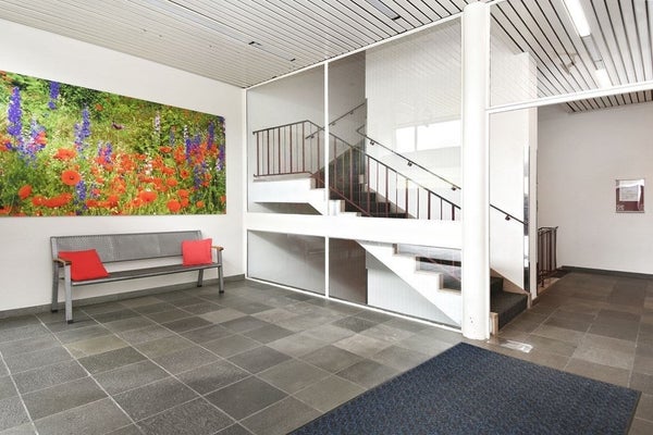 Portaal met liften in het trappenhuis met toegang middels beveiligd deursysteem naar gemeenschappelijke gang. Op deze gang is de meterkast en separaat een muurkast met cv-installatie gelegen.