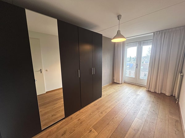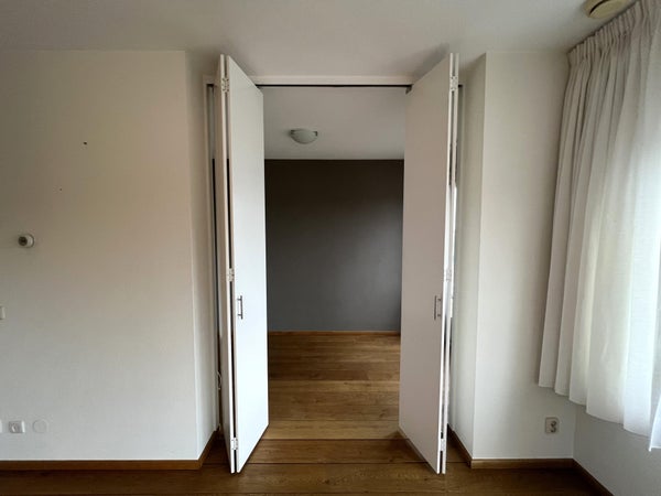 Naast de woonkamer is de extra kamer te vinden die middels vouwdeuren af te sluiten is, ideaal als werkkamer met veel lichtinval door de, wederom, openslaande deuren die toegang geven tot het Franse balkon. Deze ruimte is minder geschikt als slaapkamer.
