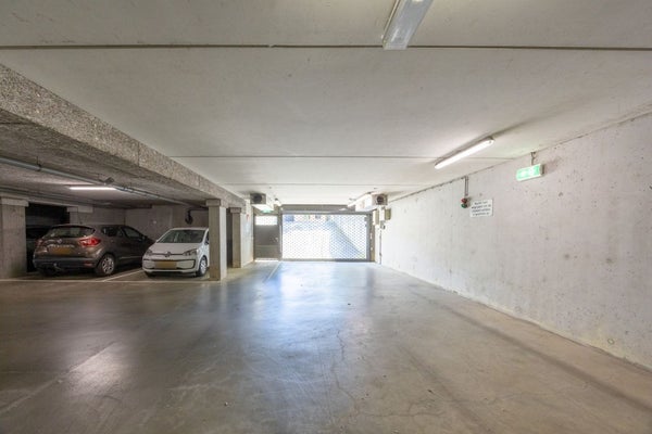 Eigen parkeerplaats en externe berging (9 m²) in het souterrain, bereikbaar per lift