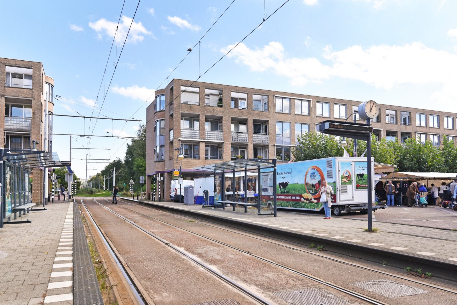 De toegang tot de appartementen gebeurt via aparte portieken met privéliften en trappenhuizen. De entreehal bevat postbussen en een intercomsysteem. De hoefijzervormige opstelling van het complex zorgt voor uitzicht op het centrale marktplein of de nabijgelegen groene zone. Elk appartement heeft een ruime woonkamer, volledig uitgeruste keuken, twee slaapkamers, een badkamer en een loggia.