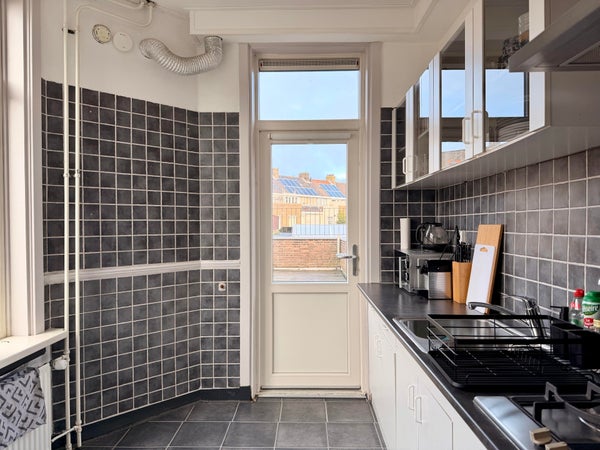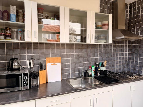 De keuken is uitgerust met een kookplaat, afzuigkap, wasbak en kastruimte. (overige keukenapparatuur wordt door de huurder zelf aangeschaft).