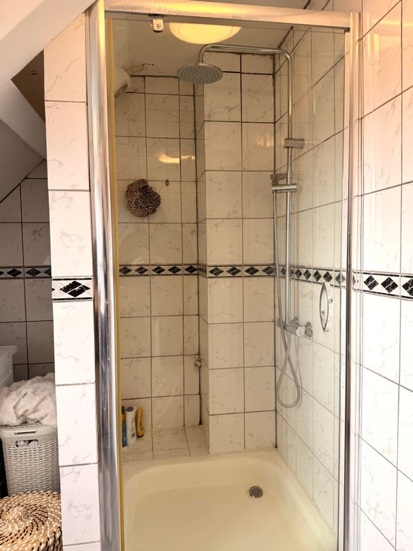 De ruime overloop leidt naar drie volwaardige slaapkamers. De badkamer is voorzien van een douche, wasmachineaansluiting en een wastafelmeubel.