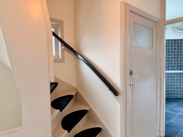 Op deze verdieping bevindt zich ook een separaat toilet en de trap naar de tweede etage.