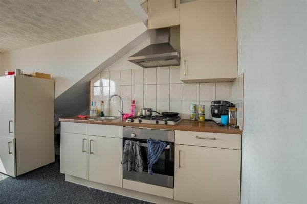 Deze kamer van 12m² op de eerste en tweede etage van een vrijstaand pand in Vlissingen is nu beschikbaar. De woonkamer met open keuken, het balkon, en de badkamer worden gedeeld met twee andere huurders. Via de centrale ingang op de begane grond bereik je de trap naar de eerste etage. Daar vind je de centrale hal met toegang tot je eigen slaapkamer, twee andere slaapkamers, en de badkamer, die is uitgerust met een wastafel, douche, toilet en een gezamenlijke wasmachine. De tweede etage omvat de ruime en lichte woonkamer met een eenvoudige keuken en een groot terras op het zuidwesten, perfect voor zonnige middagen. De maandelijkse huur bedraagt €550, met servicekosten van €111.