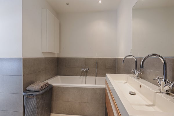 Aan voorzijde gelegen 2e slaapkamer/ study van 2.5m x 4m. Een ruime badkamer met ligbad en douche en een aparte ruimte met een nieuwe wasmachine en droger. Een separaat toilet aanwezig.