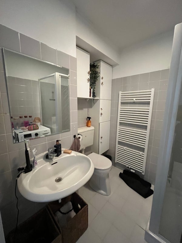 Slaapkamer aan de galerijzijde. Badkamer voorzien van wastafel, douche, toilet en wasmachineaansluiting.