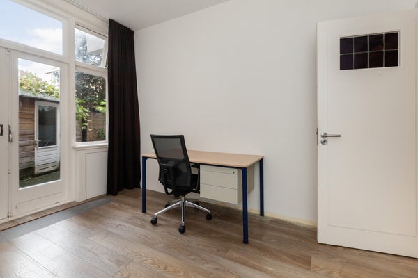 Via de ruime hal zijn alle vertrekken bereikbaar. De woning beschikt over een mooie kamer ensuite (totaal 37,5 m2) met toegang tot de tuin (met tuinset, gelegen op het zuidwesten en met een berging, er is een elektrisch zonnescherm). De ruime zithoek is aan de straatkant en de ruime eetkamer aan de tuinkant. Aan de tuinkant is de grootste slaapkamer (13,3 m2), voorzien van een 1-persoonsbed en kast. Via openslaande deuren komt u in de tuin. In deze ruimte kunt u zelf ook een 2-persoonsbed (van 1.80 m bij 2m) plaatsen. Naast de woon- eetkamer is de moderne keuken (5,2 m2). De keuken is voorzien van een 6-pits gasfornuis met oven, vaatwasser, afzuigkap, koel-vriescombinatie en een magnetron. De twee andere slaapkamers liggen aan de voorzijde van de woning, waarvan 1 (7,1 m2) is voorzien van kasten en de andere slaapkamer (7,6 m2) is voorzien van een één-persoonsbed en een bureau. Vanuit de hal komt u in de badkamer (2,6 m2) met inloopdouche, badkamermeubel, spiegelkast en design radiator. Er is een apart (hangend) toilet met fontein. In het hele appartement ligt een laminaatvloer.