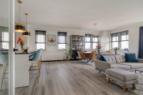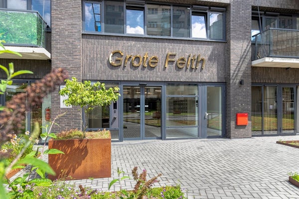 Dit moderne twee-slaapkamer appartement is gelegen op de 8e verdieping van het onlangs getransformeerde, duurzame en in 2021 gerenoveerde wooncomplex "De Grote Feith."