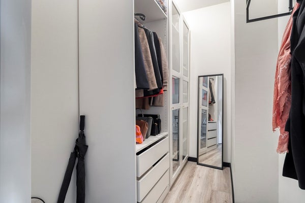 Bij binnenkomst in het appartement op de 8e verdieping word je verwelkomd in een ruime hal die toegang biedt tot alle kamers. Je vindt er een berging en een kast voor extra gemak.