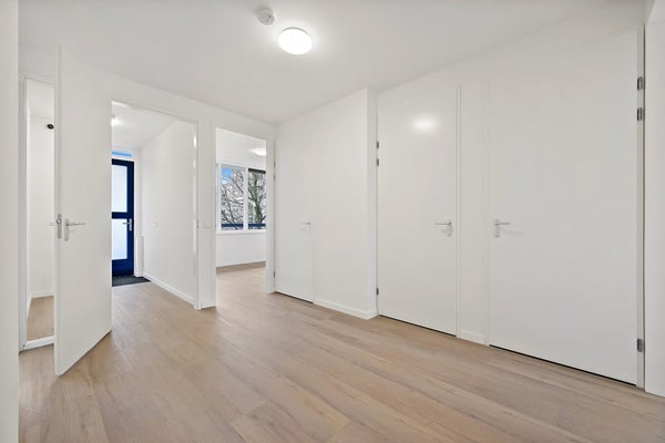 Vanuit de centrale hal bereikt u de galerij van het appartement via de lift of de trap naar de eerste etage. Het ruime voorportaal van het appartement biedt toegang tot de gang, welke toegang biedt tot alle vertrekken.