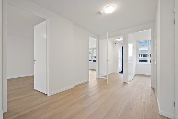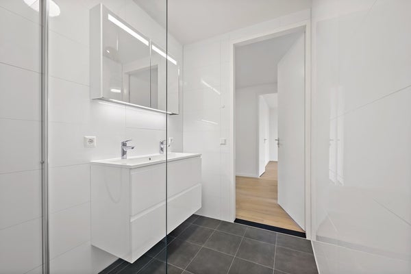 Twee slaapkamers bevinden zich aan de voorzijde van het appartement. Aan de linkerzijde van de gang vindt u de deur naar het separate hangtoilet met fonteintje alsmede de deur naar de compleet nieuwe badkamer. De badkamer is voorzien van een luxe dubbele wastafel, design handdoekradiator en ruime inloopdouche.