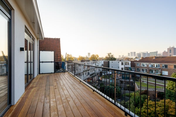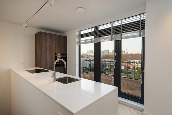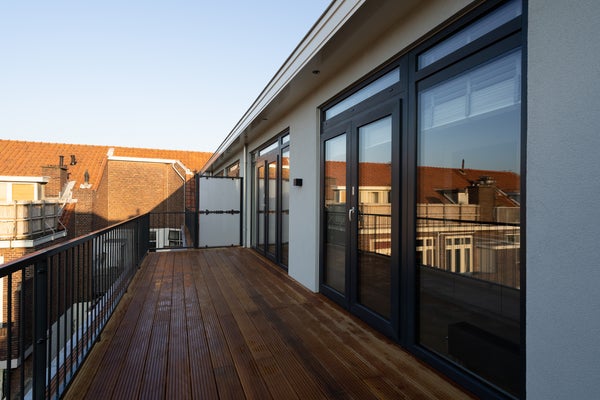 Volledig, hoogwaardig en zeer luxe gerenoveerd, licht appartement op de derde (top)verdieping aan de Van Arembergelaan in Voorburg! Het appartement beschikt over een ruime woonkamer met prachtige grote raampartij en een luxe open keuken met kook(schier)eiland, twee slaapkamers, een luxe badkamer met een ligbad en een inloopdouche met regendouche, een groot dakterras over de gehele breedte van het appartement, houten vloeren, luxe (inbouw)spots in de gehele woning, meerdere inbouwkasten en een energielabel A+.