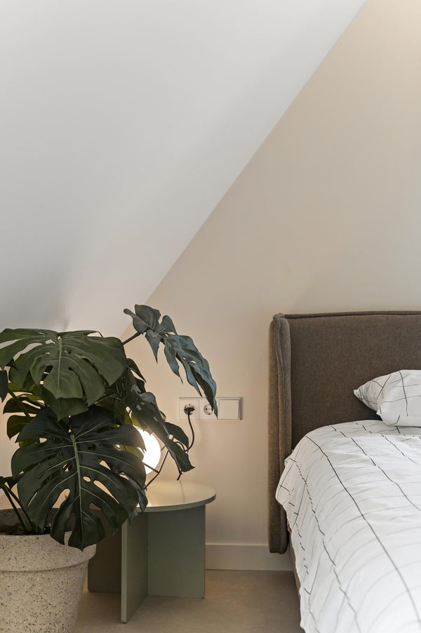 De trendy en luxe keukenopstelling is voorzien van veel kastruimte, een strak composiet werkblad en alle denkbare inbouwgemakken zoals een koel- /vriescombinatie, een combi oven/magnetron, een inductiekookplaat met 4 kookzones, een afzuigkap, een vaatwasser en zelfs een Quooker ontbreekt niet. De ruime slaapkamer ligt op de hoek van het gebouw en heeft daardoor aan twee zijden lichtinval.