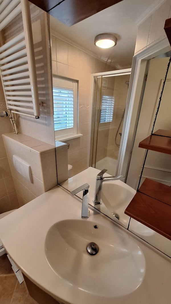 Indeling; Gezamenlijke entree met trapopgang naar de eerste verdieping. Vanuit de centrale overloop bereikt u de mooi woonkamer met toegang tot een heerlijk terras aan de voorzijde. Vanuit de woonkamer bereikt u tevens de volledig ingerichte keuken in hoekopstelling met o.a. vaatwasser, koelkast, 5-pits gasfornuis, afzuigkap etc. De badkamer is gelegen aan de voorzijde en voorzien van wastafel, douche en toilet. Middels een vaste trap bereikt u de tweede verdieping. Hier treft u twee slaapkamers; de grotere slaapkamer heeft een eigen wastafel en bergruimte. De tweede kleine slaapkamer is geschikt voor een éénpersoonsbed.