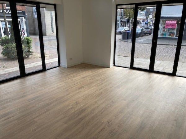 Ruime woonkamer met sfeervolle- en duurzame pvc vloerafwerking. Alle ramen zijn voorzien van dubbelglas.