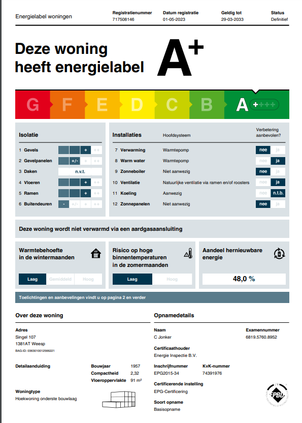 o Energielabel A, geheel geïsoleerd