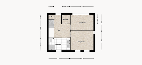 Tweede verdieping: overloop, inbouwkast en technische ruimte v.v. warmtepomp en elektrische boiler, 2 ruime slaapkamers van 13 en 14 m² en een moderne badkamer v.v. dubbele wastafelmeubel, inloopdouche en 2e toilet