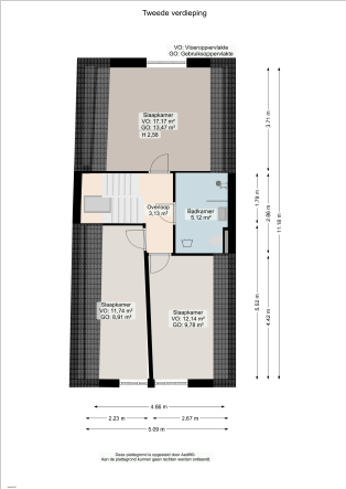 Dit fraaie appartement heeft een woonoppervlakte van maar liefst 92,39 m². Via de entree komt u in de hal, die toegang biedt tot alle verdiepingen en vertrekken. Op de eerste verdieping bevindt zich de woonkamer met een moderne open keuken. De keuken is van alle gemakken voorzien en uitgerust met diverse inbouwapparatuur, waaronder een koelkast, afzuigkap, inductiekookplaat, vaatwasser en een combinatie oven/magnetron. Daarnaast is op deze verdieping een separaat toilet aanwezig. Op de tweede verdieping zijn drie ruime slaapkamers gesitueerd, evenals een complete badkamer. De badkamer is voorzien van een douche, toilet en een wastafel met bijpassend meubel.