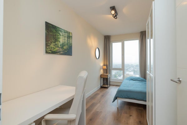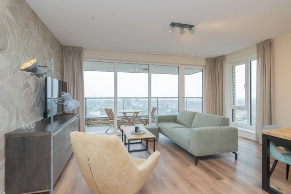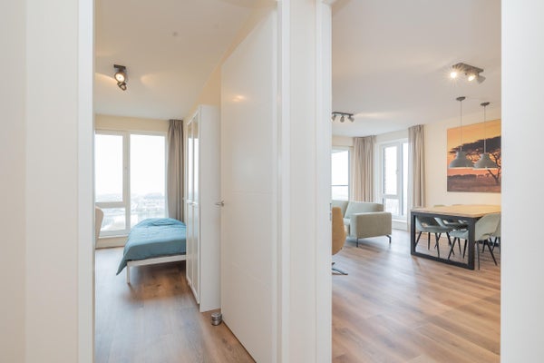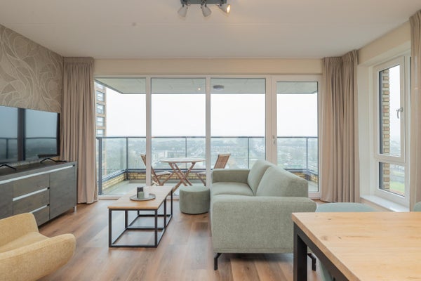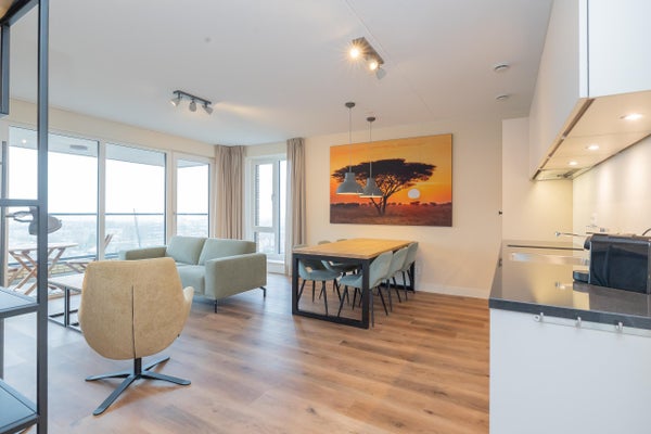 Wonen op hoogte, in comfort en met het daarbij behorende vrije uitzicht. In het moderne nieuwbouwcomplex genaamd 'De Zaanse Helden' bieden wij dit hoogwaardig afgewerkte en volledig gemeubileerde 2-kamer appartement aan, gelegen op de zevende verdieping. Met twee volwaardige slaapkamers, een royaal balkon gesitueerd op het westen, moderne keuken en privéparkeerplaats (een tweede parkeerplaats is beschikbaar tegen een additionele vergoeding) combineert deze woning het gemak van nieuwbouw met een warme, instapklare uitstraling.