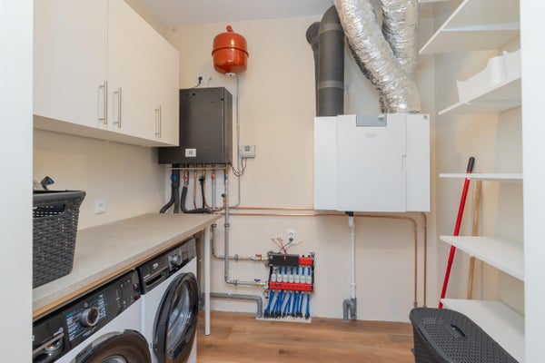 In de woning bevindt zich een ruime inpandige berging waar de wasmachine- en droger staan opgesteld en zich de overige technische installaties bevinden.