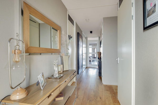 De inrichting en afwerking zijn modern en smaakvol op elkaar afgestemd. Bijzonder in dit appartement zijn de houten vloerdelen die door de hele woning zijn gelegd.