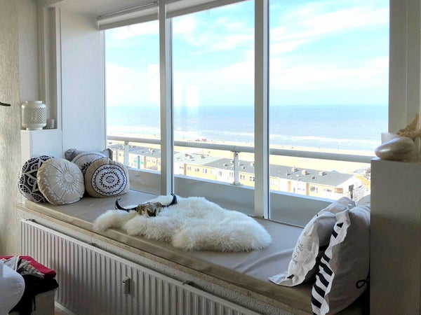 Heerlijk modern en licht -hoek- appartement met waanzinnig en vrij uitzicht op het strand en wijde omgeving, waar je zo in kunt!