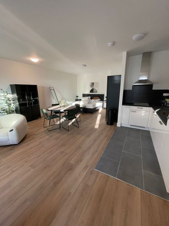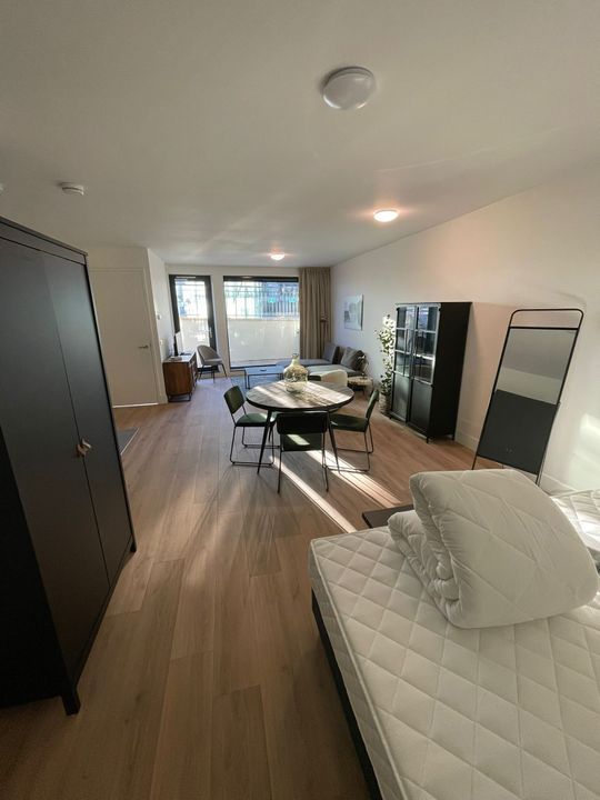 Er is een wasmachine/wasdroger combinatie in de studio.