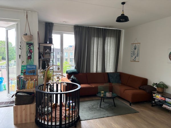 - Woonkamer met fraai lichtinval door raampartijen aan de straatzijde en toegang tot het balkon;