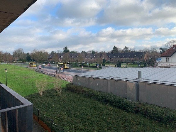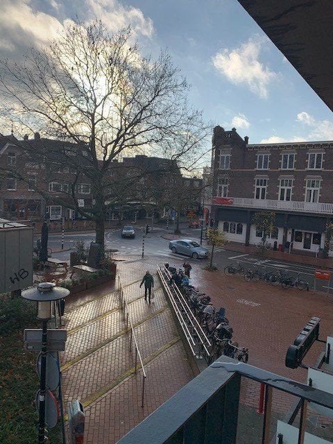 Vanuit het appartement is er fraai uitzicht over het Bethaniëpark met vijver.