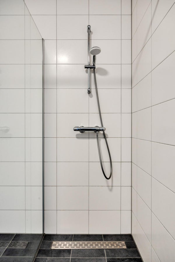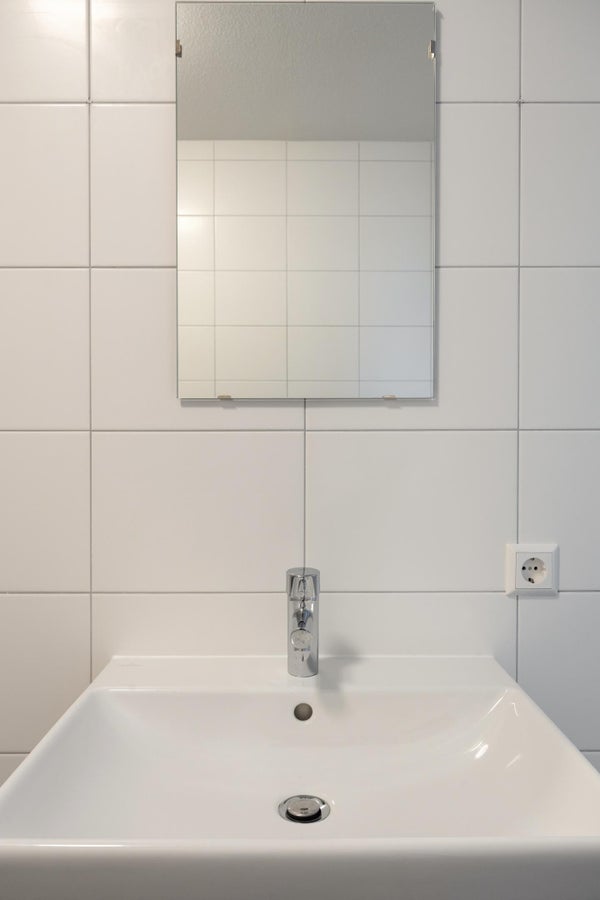 De badkamer wordt uitgevoerd met een douche en wastafel. Het toilet is separaat gerealiseerd en bereikbaar via de hal. De aansluitingen voor wasmachine en droger bevinden zich in de wasruimte.