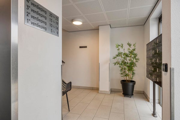 U betreedt het pand via de centrale entree met intercominstallatie en bellenplateau. De centrale liftinstallatie brengt u naar de derde verdieping, alwaar u de voordeur via de open galerij aan de uiterste hoek van het complex kunt vinden.