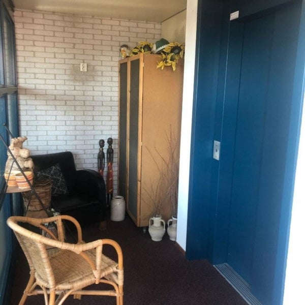 Het appartement bevindt zich op de vijfde verdieping en u kunt hier de algemene lift voor gebruiken. U komt het vierkamerappartement binnen via de hal. Hier vindt u tevens het toilet en de deuren naar de twee slaapkamers en studeerkamer, badkamer en uiteraard de woonkamer. Rondom de gehele woning heeft u toegang tot een heerlijk dakterras.