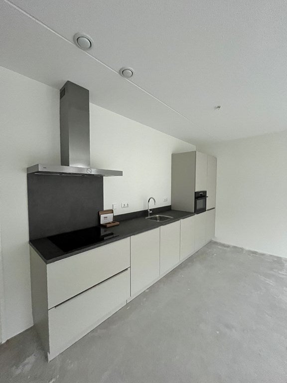 De open keuken is voorzien van hoogwaardige inbouwapparatuur van ATAG (inductie kookplaat, afzuigkap, koel-/ vriescombinatie, vaatwasser en combimagnetron). Woonkamer met toegang tot het balkon.