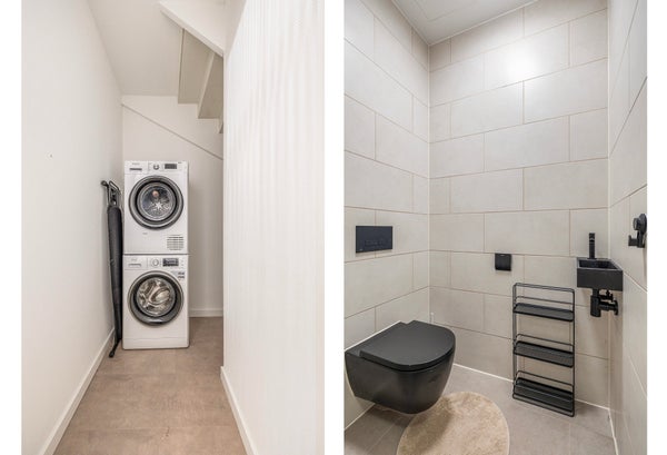 Inpandige berging met opstelling wasmachine en droger.