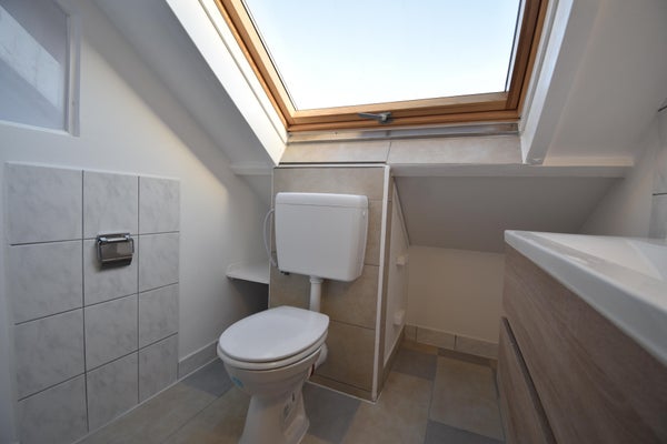 De tweede verdieping bereikt u via de trap vanuit de woonkamer. Hier zijn nog twee goed bemeten slaapkamers, waarvan één met doorloop naar een extra kamer. Verder vindt u hier een tweede toilet met wastafelmeubel en de wasruimte.