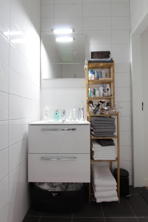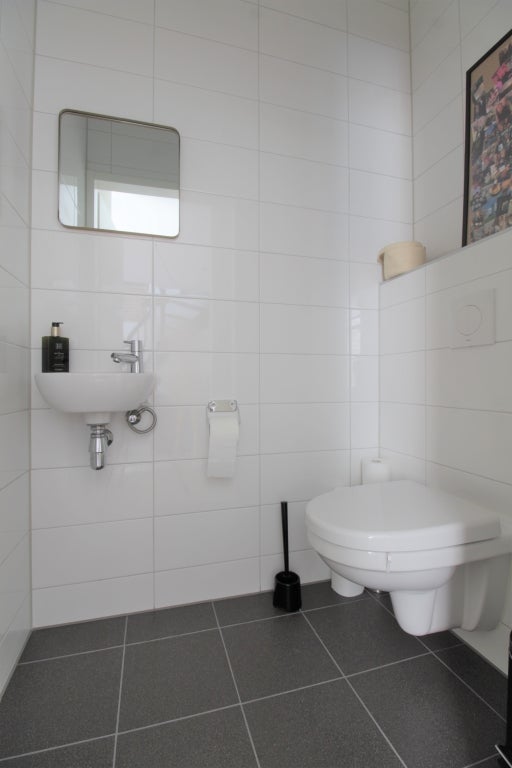 Entree appartement. Lichte woonkamer door de grote raampartijen. Moderne open keuken voorzien van inductiekookplaat met afzuigkap, vaatwasser, combi-oven en koelkast/diepvriezer. Moderne badkamer uitgerust met wastafelmeubel en douche. Het toilet is ideaal separaat gesitueerd.