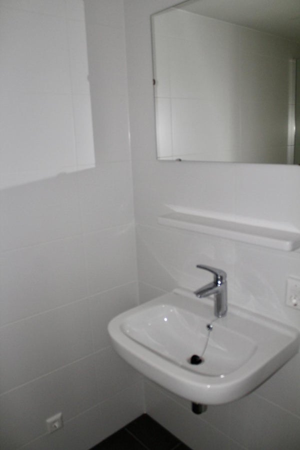 De badkamer is voorzien van douchecabine , wastafel en toilet - wasruimte