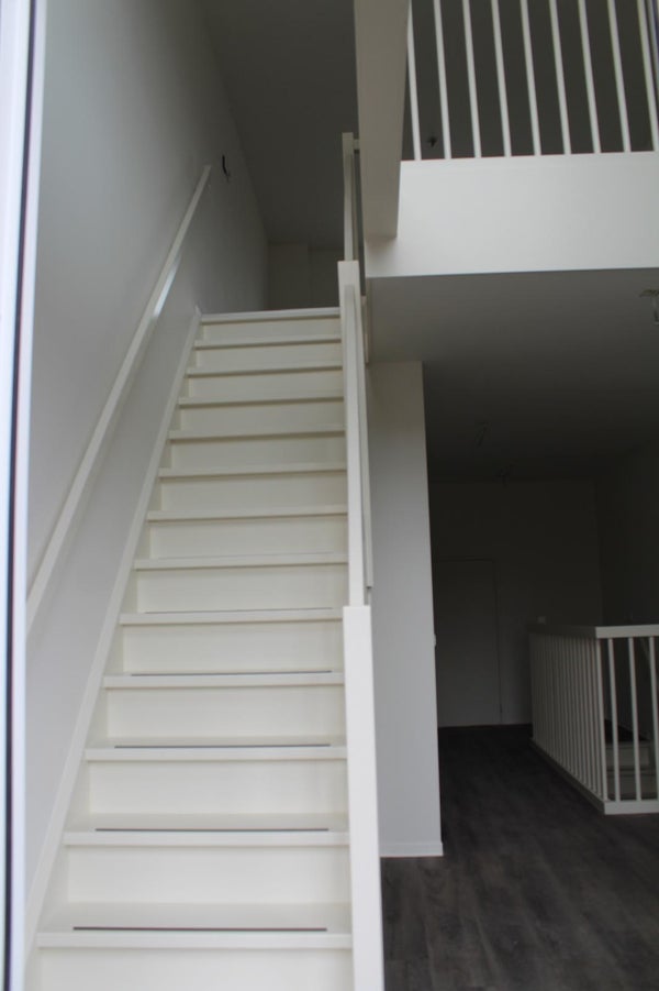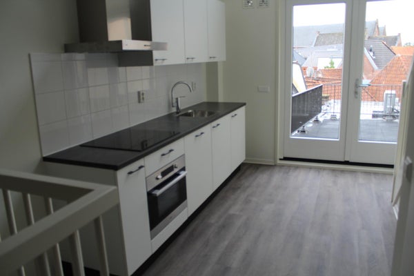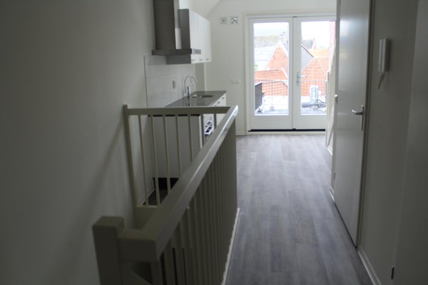 In de keuken is de opgang naar het ruime balkon 13,50m2. Ook vind je in de keuken een trap naar een extra vide verdieping van 18,5m2