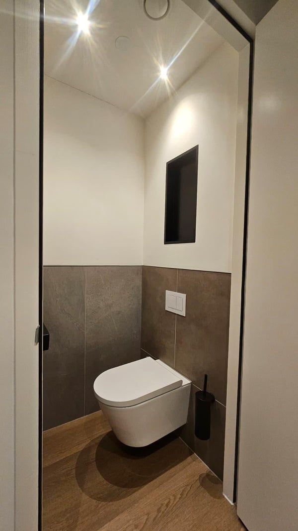 Het appartement beschikt over twee slaapkamers en een dakterras. De moderne keuken is voorzien van een vaatwasser, koelkast met vriesvak en alle overige benodigdheden. Het toilet is uitgerust met elektronische bediening via afstandsbediening, met functies zoals verwarmen, spoelen en reinigen.