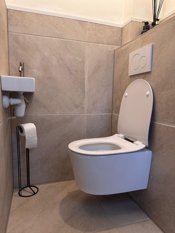 Via de trap kom je naar de begane grond. Daar vindt u de slaapkamer met tuin en de luxe, modern betegelde badkamer, uitgerust met een designradiator, elektrische afzuiging, thermostatische douchemengkraan, badkamermeubel met onderkast en wastafel, een ruime douche en het tweede toilet .