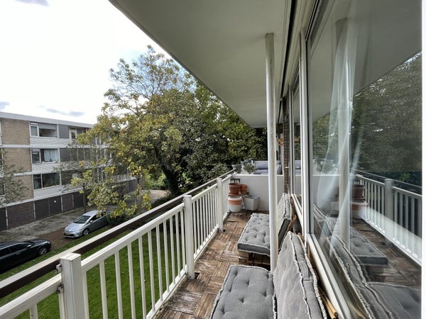 Je komt binnen via de entree met hal, die toegang geeft tot alle vertrekken. De woonkamer is ruim en licht dankzij de grote ramen en heeft een balkon waar je lekker buiten kunt zitten.
