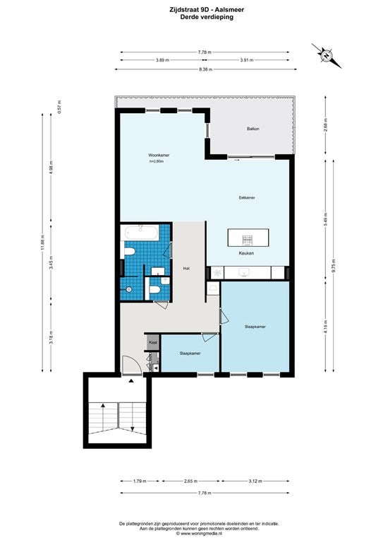 - De bovenwoning heeft een woonoppervlakte van 84 m² en beschikt over 3 kamers, waarvan 2 slaapkamers;