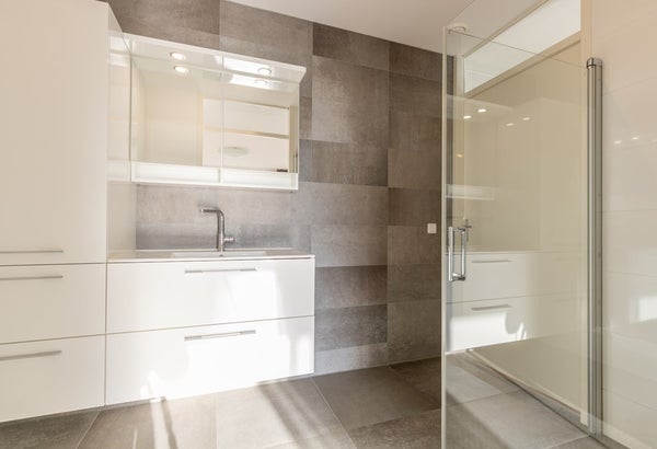 De badkamer is zowel vanuit de hal als vanuit de derde, ruime slaapkamer bereikbaar. Deze is uitgerust met een inloopdouche, wastafelmeubel en designradiator. De derde slaapkamer grenst direct aan de woonkamer en is door de ligging op het zuiden een fijne, lichte ruimte met toegang tot het balkon.