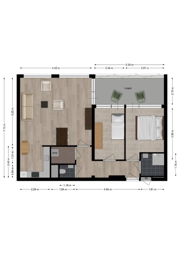 - De portiekflat heeft een woonoppervlakte van 73 m² en beschikt over 3 kamers, waarvan 2 slaapkamers;