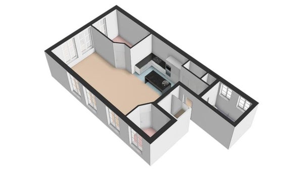 - De galerijflat heeft een woonoppervlakte van 77 m² en beschikt over 3 kamers, waarvan 2 slaapkamers;