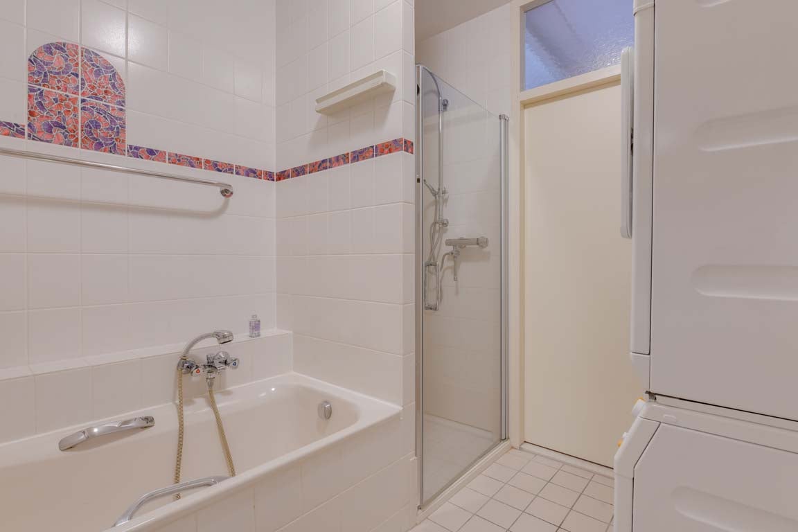 Dit ruime appartement van meer dan 100 m² bevindt zich aan de Geesterweg in Alkmaar, tegenover de Grote Kerk. Op loopafstand vindt u het historische centrum met een divers winkelaanbod, de kaasmarkt, restaurants en terrassen. Het station en uitvalswegen zijn ook nabij. Het appartement heeft een royale woonkamer, een ruime keuken met apparatuur zoals een koelkast en inductiekookplaat, en een bijkeuken met mechanische ventilatie. Er zijn twee ruime slaapkamers en een badkamer met inloopdouche, ligbad en wastafel, toegankelijk vanuit de grootste slaapkamer en hal. Het appartement beschikt ook over een eigen garage en een fietsenberging. De servicekosten bedragen €199,37 per maand.